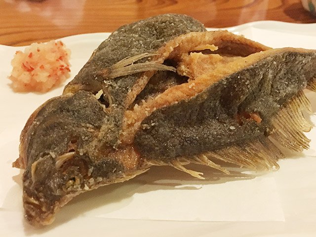 長井市《豊穣》のかれいの唐揚げ