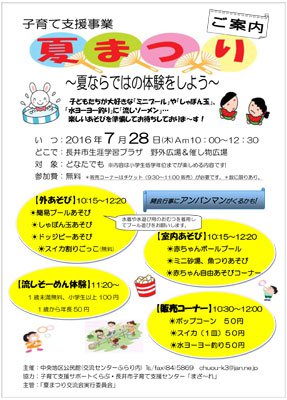 ☆子育て支援事業 夏まつり交流会 【参加者募集】