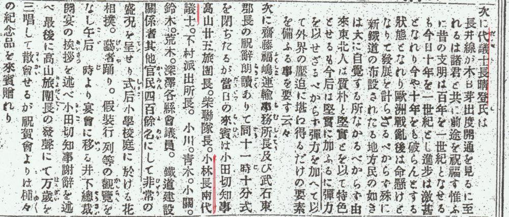 大正3年の長井線開通祝賀会での祝辞が米澤新聞に載っている。時代の変化に対応する「弾力」の必要性を訴えていることに、長氏の事業家としての信念が感じられ、現代にも通じるメッセージであるように思える。氏は、大正5年(1916年)に逝去された。