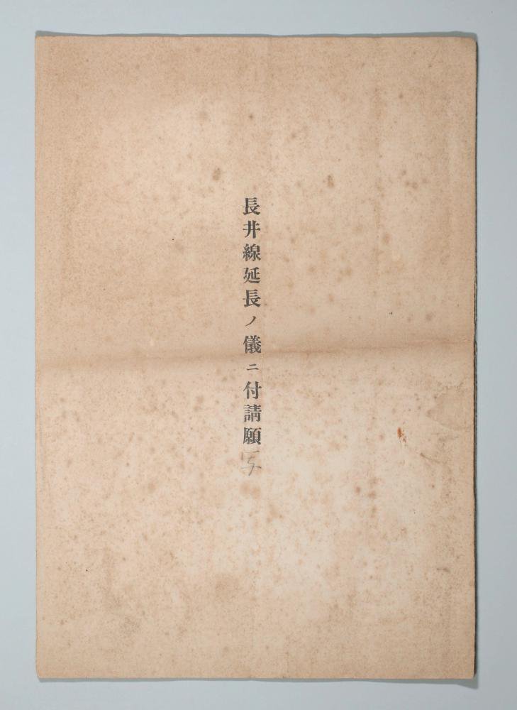 この度、南陽市宮内にある「ふるさと資料館・時代のわすれもの」さんから、大変貴重な資料を見せていただいた。これは大正8年6月の日付があり、床次竹二郎鉄道院総裁にあてた請願書であり、請願者には荒砥町長のほか東五百川村、大谷村(現在の朝日町)も含めて6名の連名となっている。
