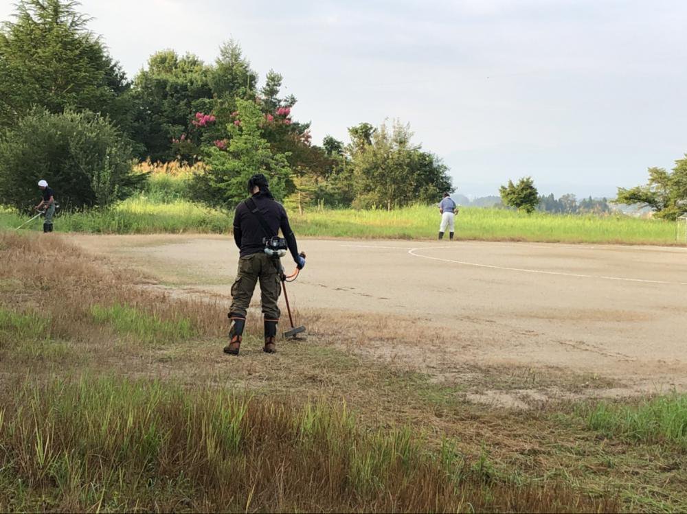 伊佐沢地区親睦団体『燦燦(さんさん)会』(代表:佐藤英幸)さんが、8月29日(土)午前6時から約1時間14名の方が参加し、伊佐沢児童センターご父兄の協力作業と一緒に活動いただき、ご父兄・職員は草むしり、『燦燦会』さんは園庭の草刈りボランティアを行ってくださいました。多数の方に参加いただいたことで、園庭の広範囲をきれいに草刈りしていただきました。早朝とはいえ、作業をはじめると汗を流しながらの草刈りになりました。